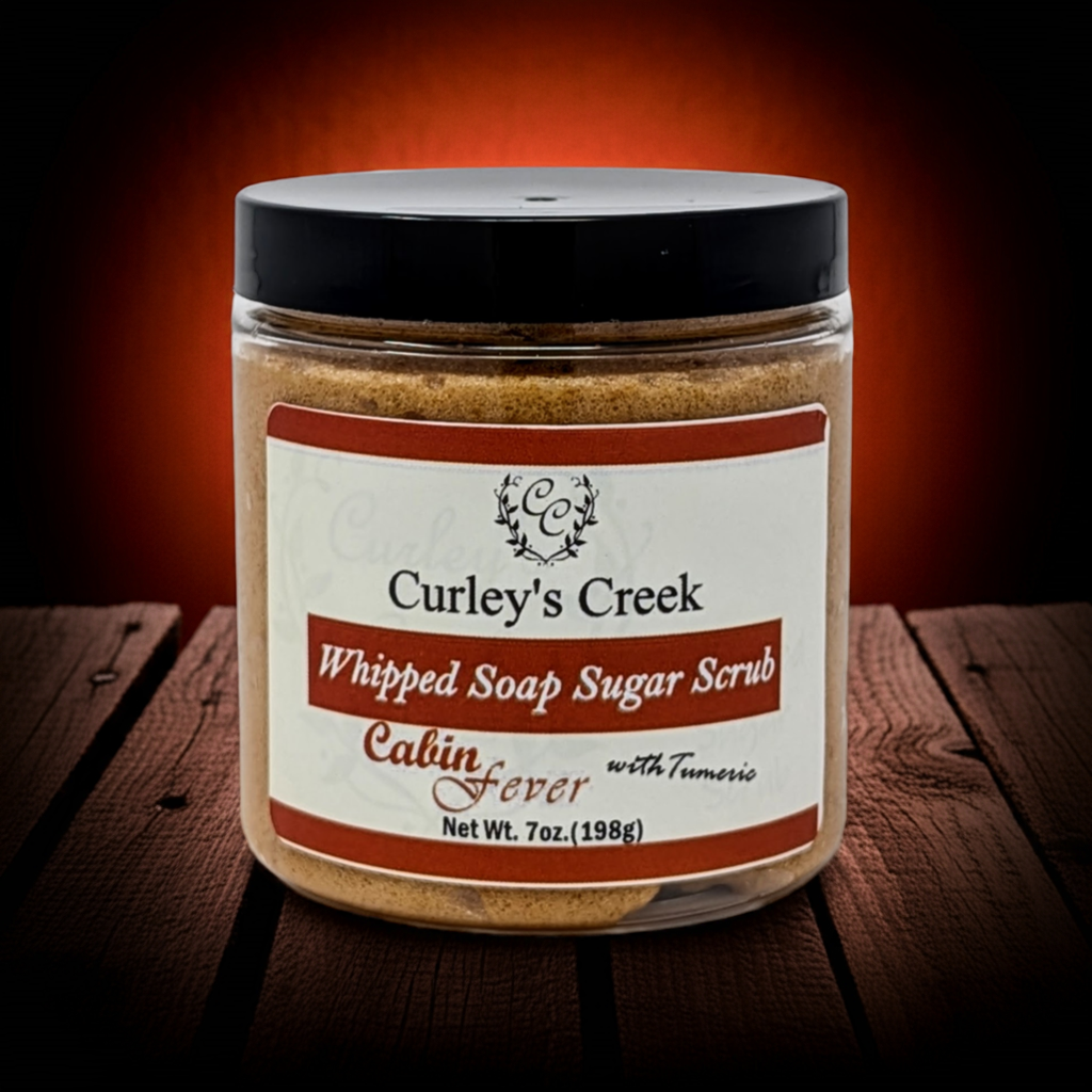🌲 Cabin Fever | Whipped Soap Sugar Scrub | Turmeric Infused | 7oz | Curley's Creek
