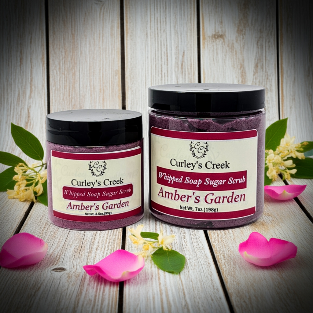 🌸 Amber's Garden | Whipped Soap Sugar Scrub | 3.5oz | 7oz | Exfoliating Wash | Curley's Creek