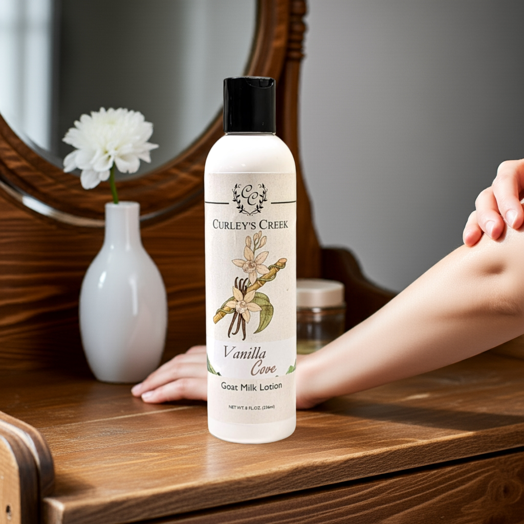 🍦Vanilla Cove | Goat Milk Lotion | Handmade Natural Skincare | 4oz | 8oz | Nourishing & Moisturizing | Curley's Creek